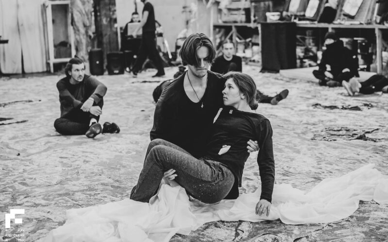 Студенти другого курсу кафедри сценічного мистецтва і хореографії беруть участь в інтерлюдії руху “Біла тінь” за мотивами пʼєси Карела Чапека “Біла хвороба”