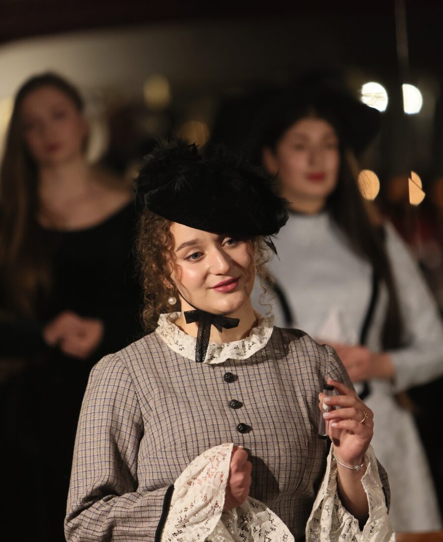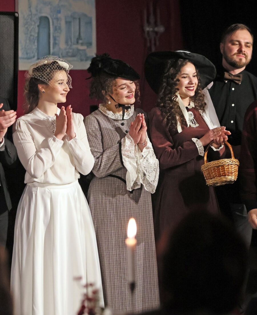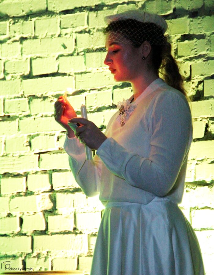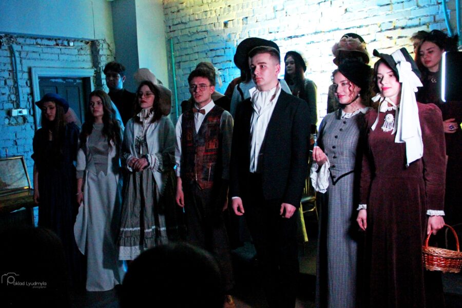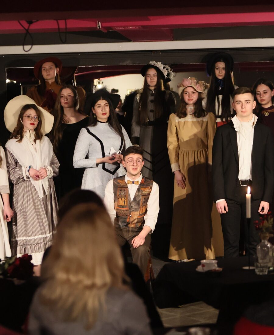 У старовинних елегантних сукнях у вікторіанському стилі: із мереживом, капелюшками, вуаллю та віялами – у такій атмосферній обстановці при свічках в Івано-Франківську відбувся літературний вечір “У дзеркалі Ліниного слова”. Студенти-першокурсники Навчально-наукового інституту мистецтв (художня керівниця курсу – заслужена артистка України Олеся Пасічняк) підготували театральну композицію до 95-ліття великої української поетеси та письменниці Ліни Костенко.