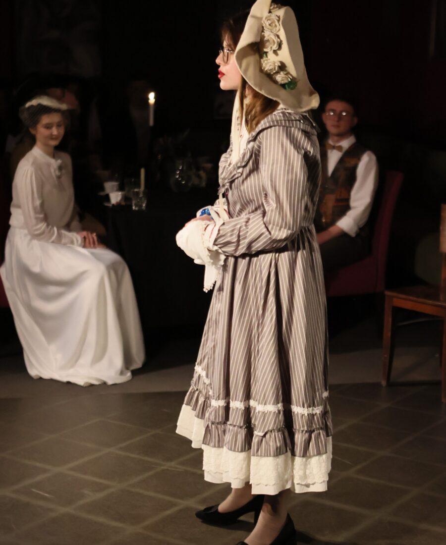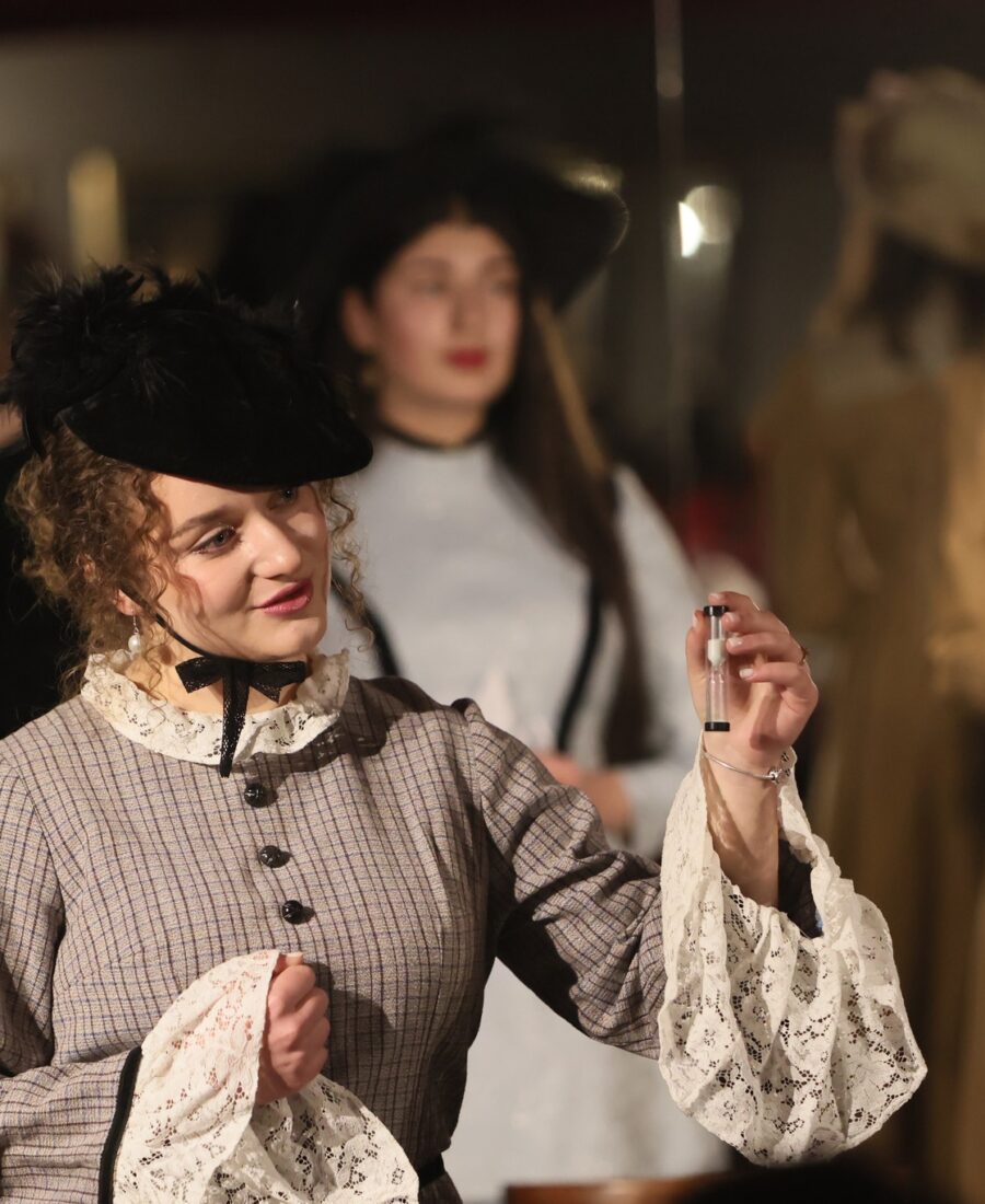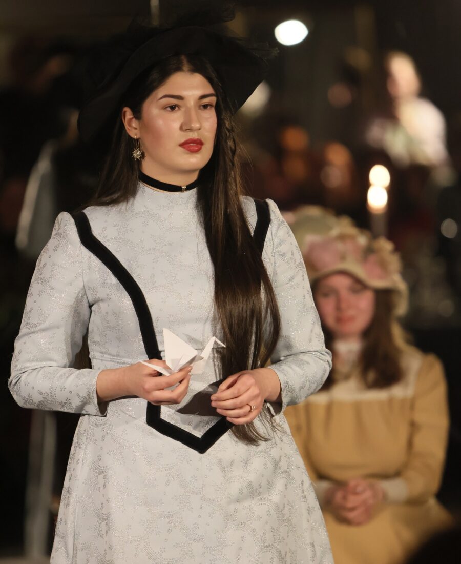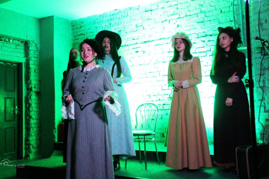 У старовинних елегантних сукнях у вікторіанському стилі: із мереживом, капелюшками, вуаллю та віялами – у такій атмосферній обстановці при свічках в Івано-Франківську відбувся літературний вечір “У дзеркалі Ліниного слова”. Студенти-першокурсники Навчально-наукового інституту мистецтв (художня керівниця курсу – заслужена артистка України Олеся Пасічняк) підготували театральну композицію до 95-ліття великої української поетеси та письменниці Ліни Костенко.