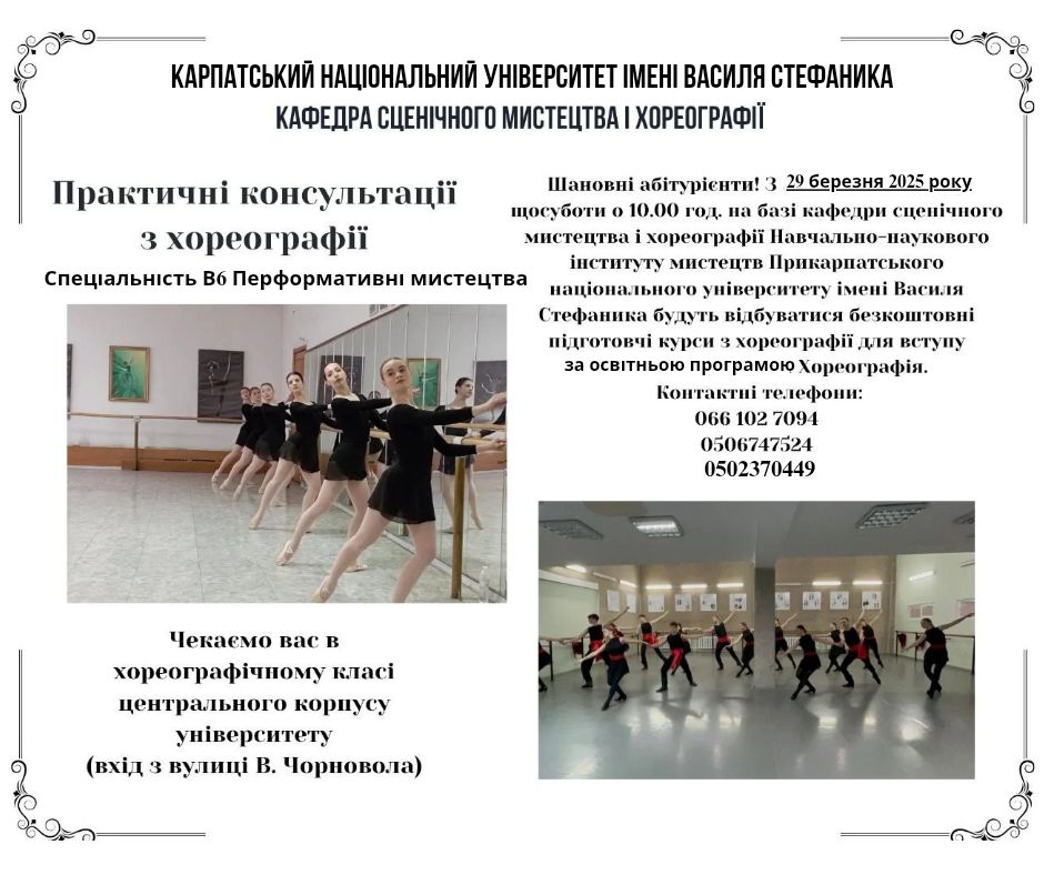 Безкоштовні підготовчі курси для вступу на спеціальність В6 Перформативні мистецтва за освітньою програмою “Хореографія”