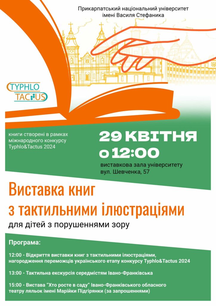 29 квітня у Прикарпатському (Карпатському) національного університету імені Василя Стефаника урочисто відкрили виставку книг з тактильними ілюстраціями для дітей з порушеннями зору.