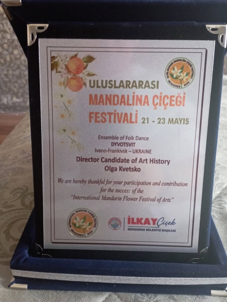 Ансамбль танцю “Дивоцвіт” Навчально-наукового інституту мистецтв Карпатського національного університету імені Василя Стефаника (кандидат системи, доцент кафедри сценічного мистецтва і хореографії керівник Ольга Квецко) з гідністю представив Україну на Міжнародному фестивалі мистецтв “Квіти Мандарину”, що відбувся в Туреччині з 20 по 25 травня 2025 року.