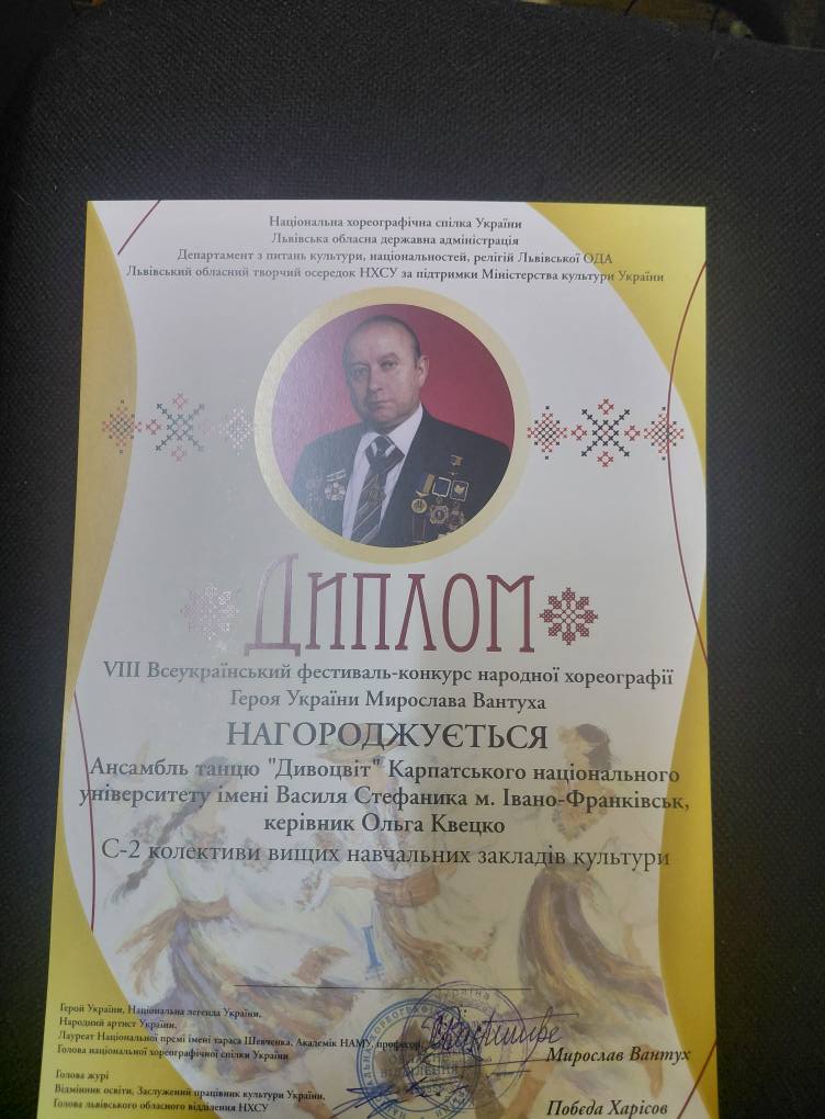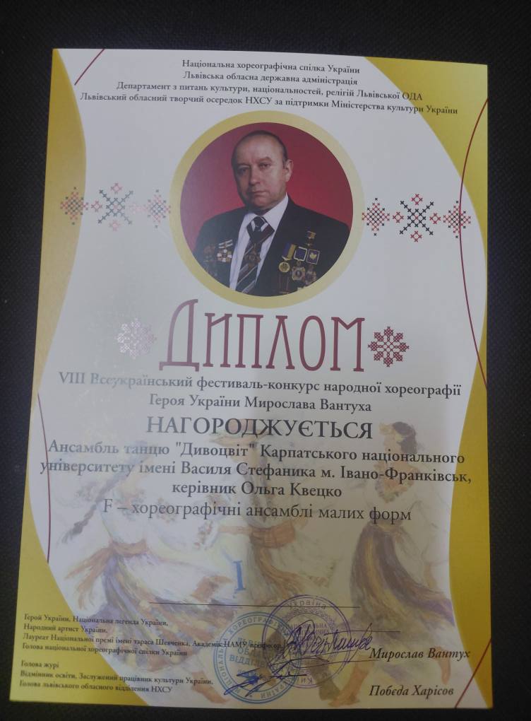 на VІІІ Всеукраїнському фестивалі-конкурсі народної хореографії Героя України Мирослава Вантуха (м. Львів)!