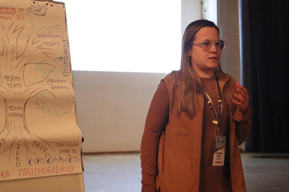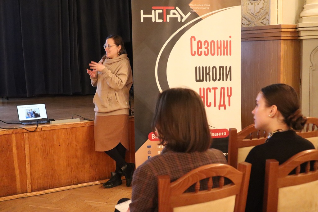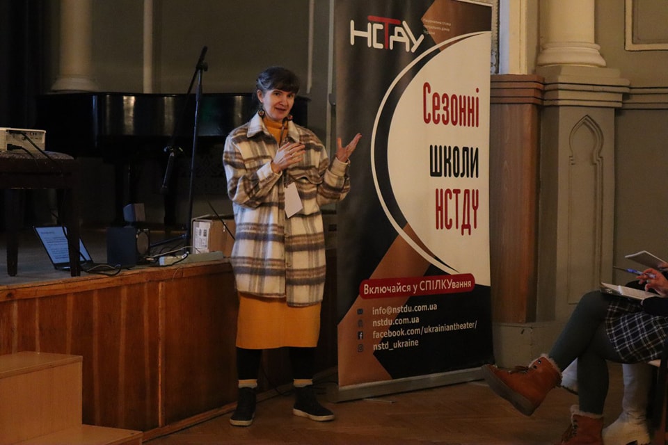 З використання презентації, що містила приклади театральних постановок, студентам репрезентували інформацію про новітні напрямки в українському сценічному мистецтві: психологічний, ігровий, поетичний театр, постдраматичний, критичний (постдокументальний), пластично-візуальний, політичний, імерсивний, бейбі-театр. Юлія Щукіна поділилася досвідом, здобутим в ході власного дослідження наступних аспектів театрального мистецтва: ритуалізація і циркізація театру, сучасні інтерпретації української класики, вистави-мюзикли і танц-театри, вистави інклюзивного напрямку, травестійна й вікова ексцентрика акторів-виконавців з застосуванням прийому «відчуження образу», використання відео-арт та комп’ютерної графіки.