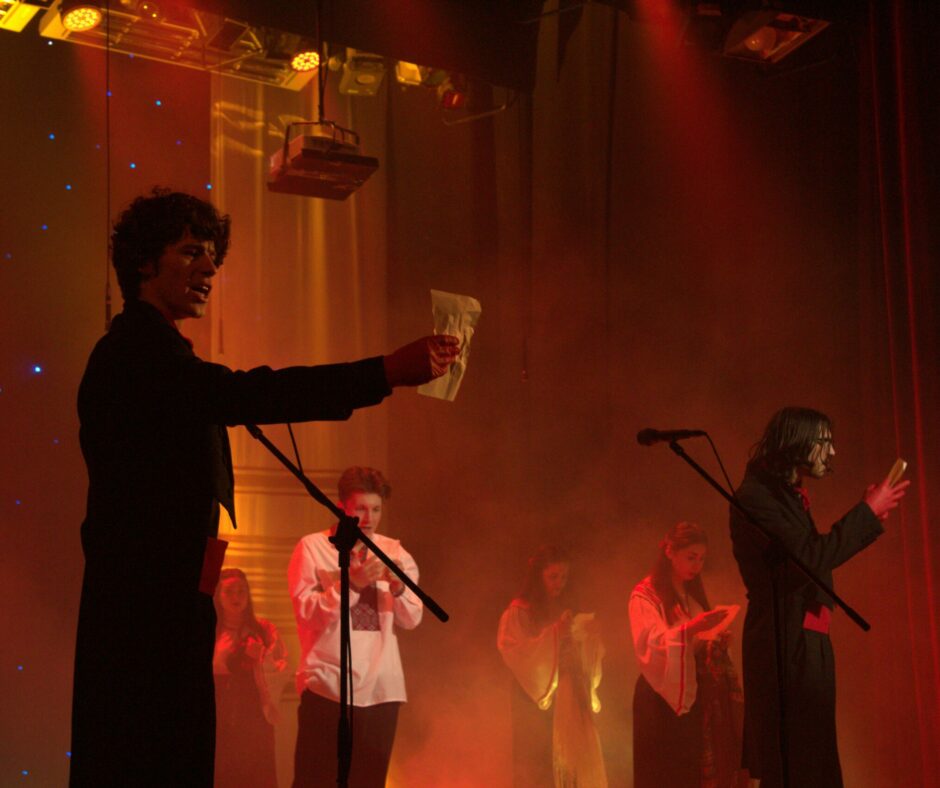 В рамках проведення Шекспірівського фестивалю 2025 в Івано-Франківську відбувся показ вистави “Макбет” В. Шеспіра (реж. І. Уривський). Студентам-акторам першого курсу випала унікальна можливість – взяти участь у масовій сцені вистави, попрацювати поряд з професійними акторами столичного національного театру.