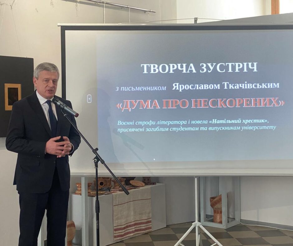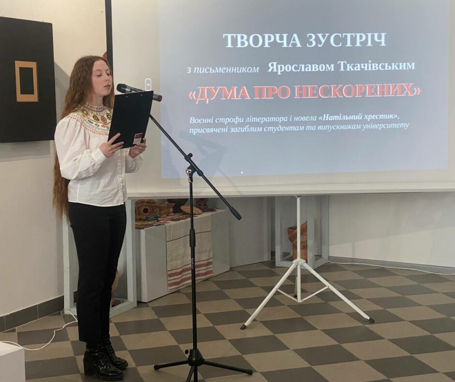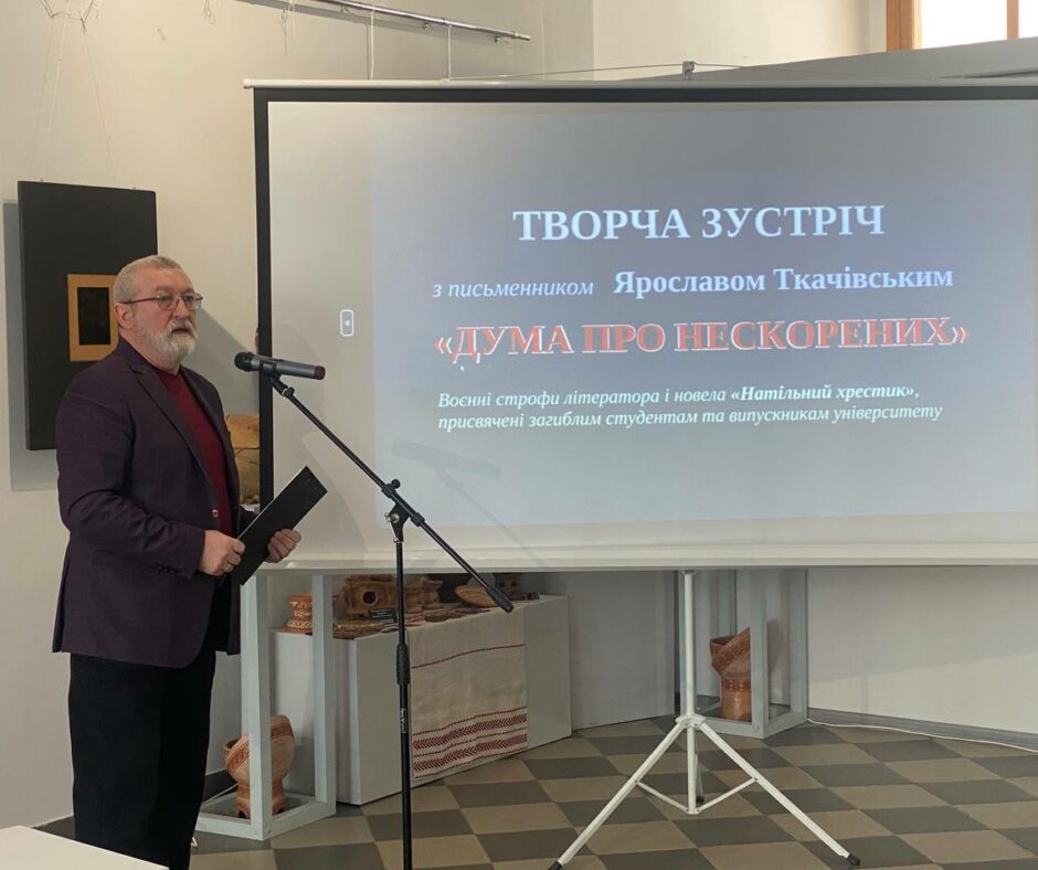 Сьогодні у виставковій залі Прикарпатського національного університету імені Василя Стефаника відбулася творча зустріч з письменником Ярославом Ткачівським, означеною автором як «Дума про нескорених», адже все літературно-мистецьке дійство митець присвятив усім загиблим студентам і випускникам університету.