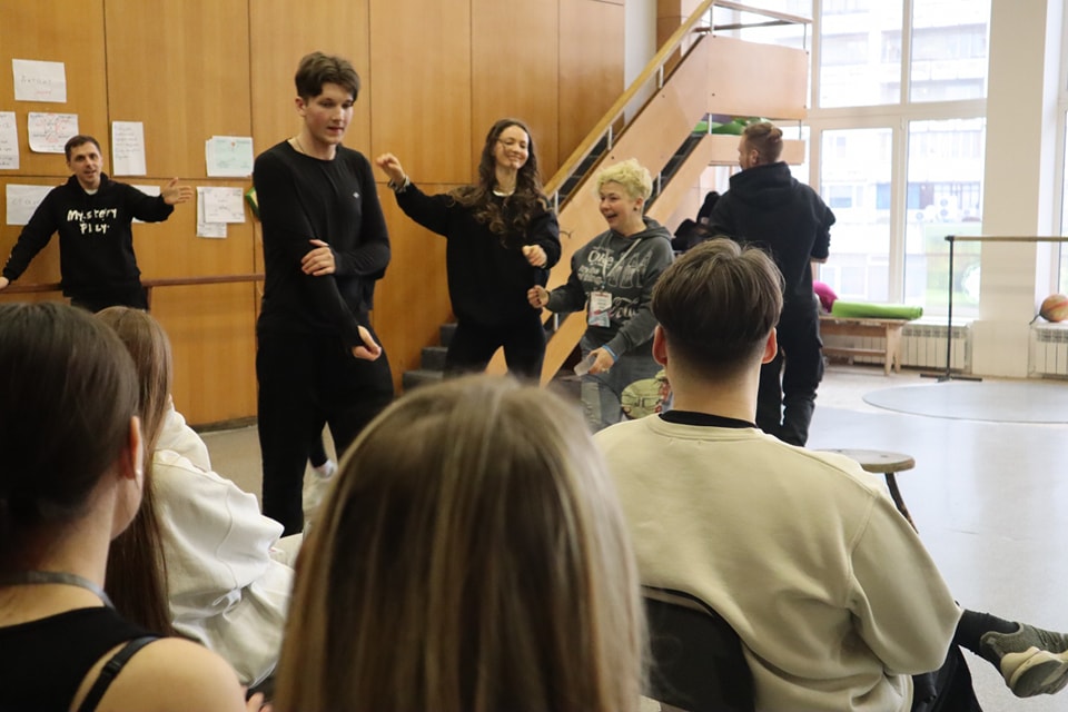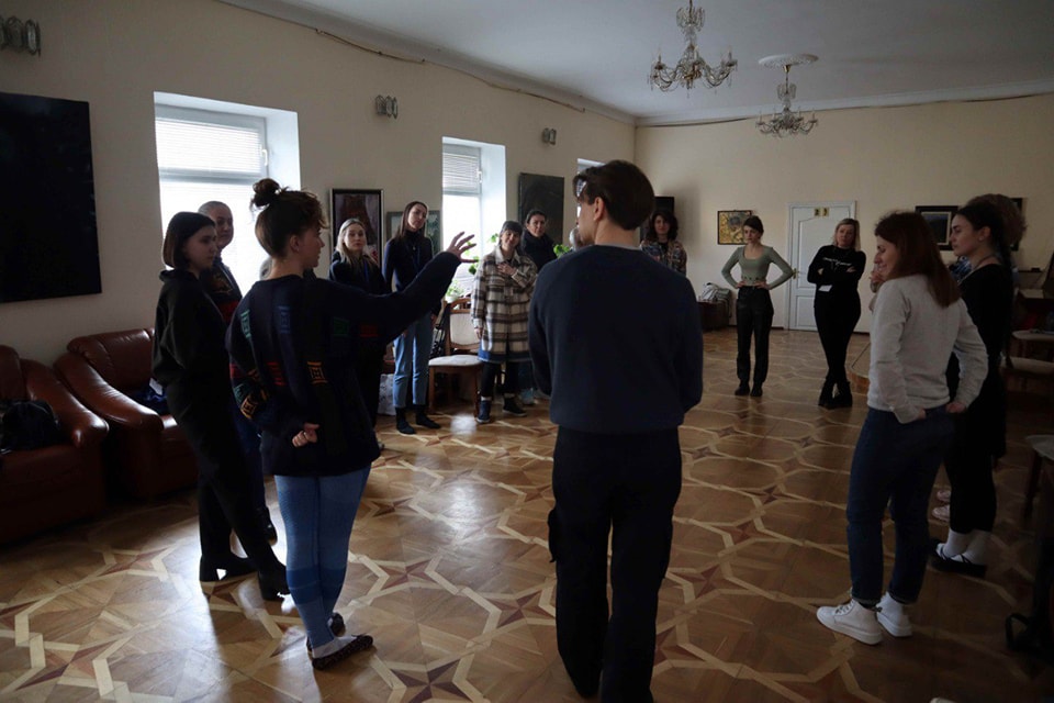 Окрім інтенсивного навчання з тренерами школи, на учасників чекали майстер-класи від міжнародних фахівців – чеського режисера Бржетіслава Рихліка та білоруського актора та перформера Ігоря Шугалеєва.