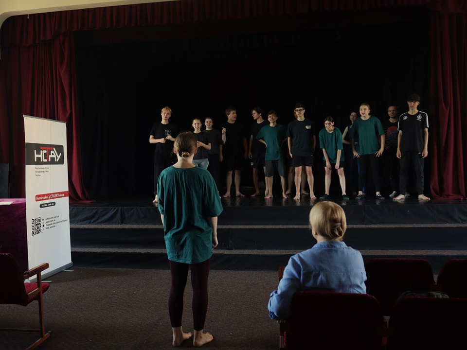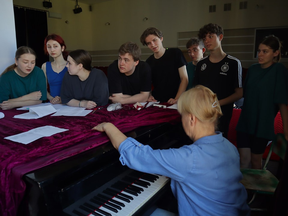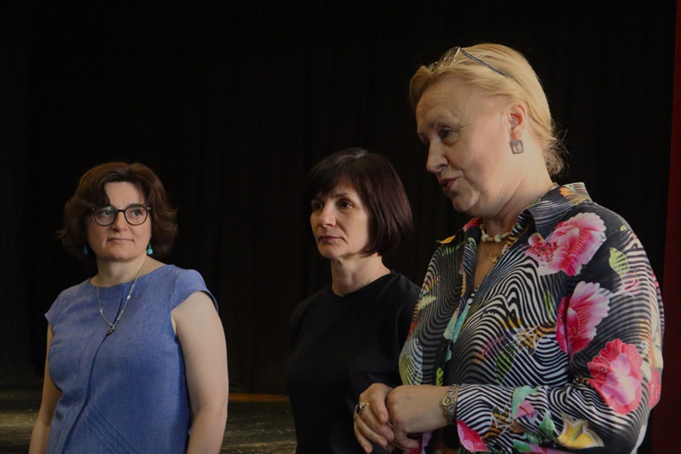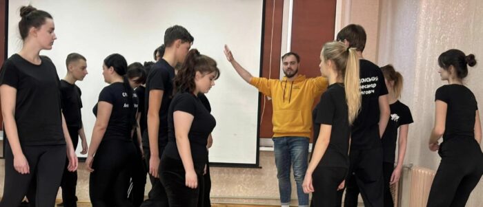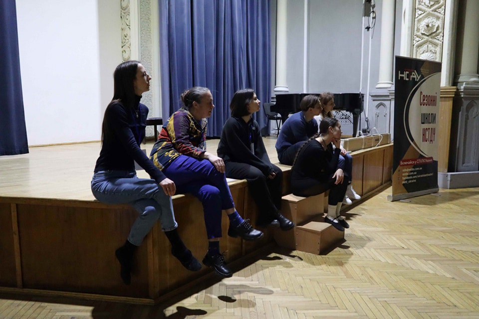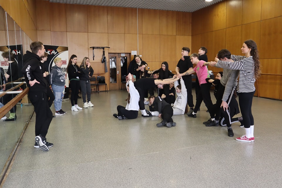 До роботи зі студентами долучилися завідувачка кафедри сценічного мистецтва і хореографії, заслужений працівник культури України, член Національної спілки театральних діячів України Надія Вікторівна Кукуруза та викладачка сценічного мовлення Ольга Юріївна Кожушок разом зі студентками Інституту мистецтв КНУВС.