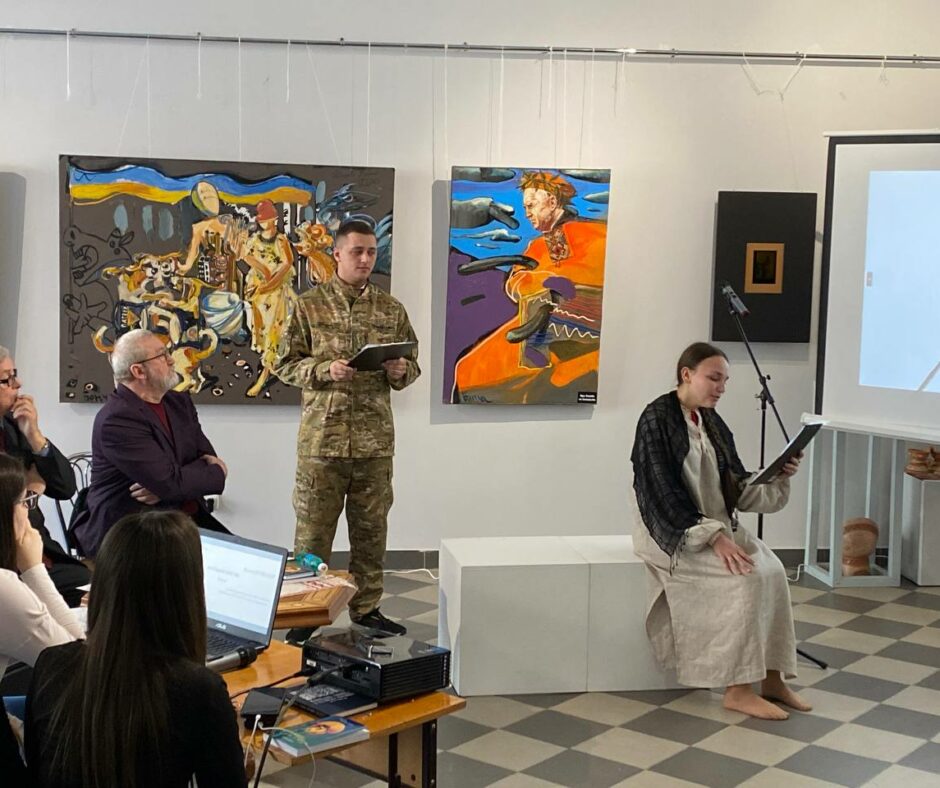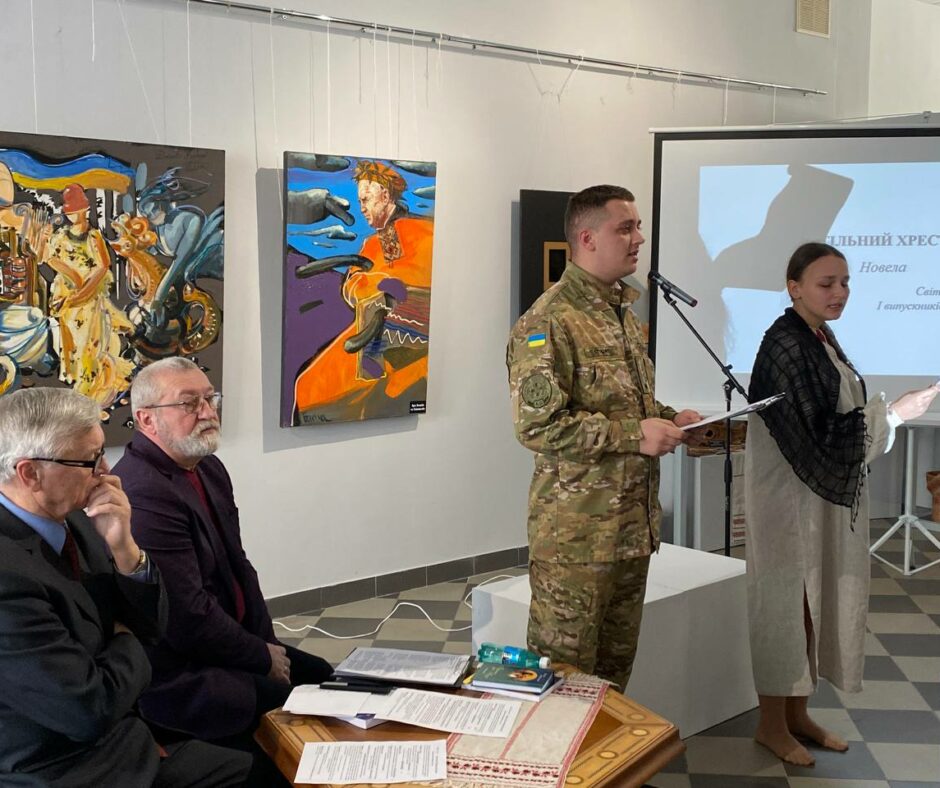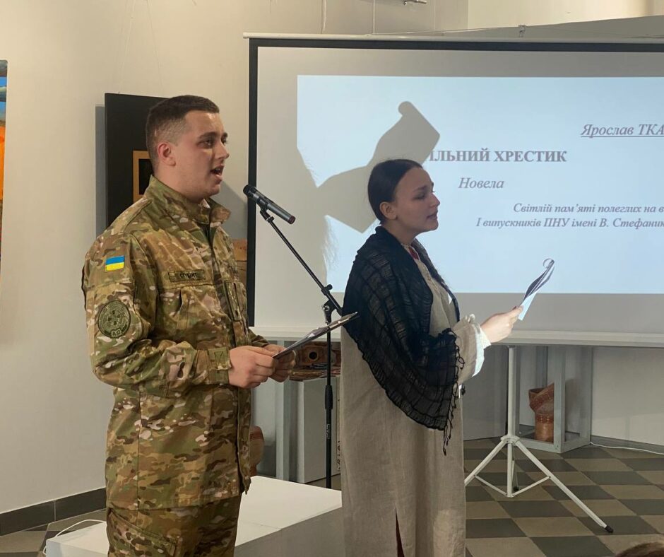 Студенти доцента кафедри, викладача сценічної мови Надії Кукурузи Тимків Назарій і Котула Романія долучилися до презентації творчості митця виконанням новелли письменника “Натільний хрестик” (сценічний варіант Надії Кукурузи) . Поезії читали: Сак Дарія, Стрельбіцька Ольга, Півторак Юлія і Тимків Назарій. Крім того, Назарій виконав пісенні твори на слова Ярослава Ткачівського.